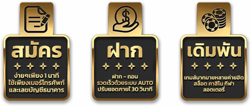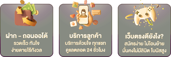 ตอบ : - มีระบบฝาก-ถอนอัตโนมัติรวดเร็ว มีโปรโมชั่นและเครดิตฟรีมากมาย รองรับธนาคารชั้นนำทุกแห่ง และมีทีมซัพพอร์ต 24 ชั่วโมง
